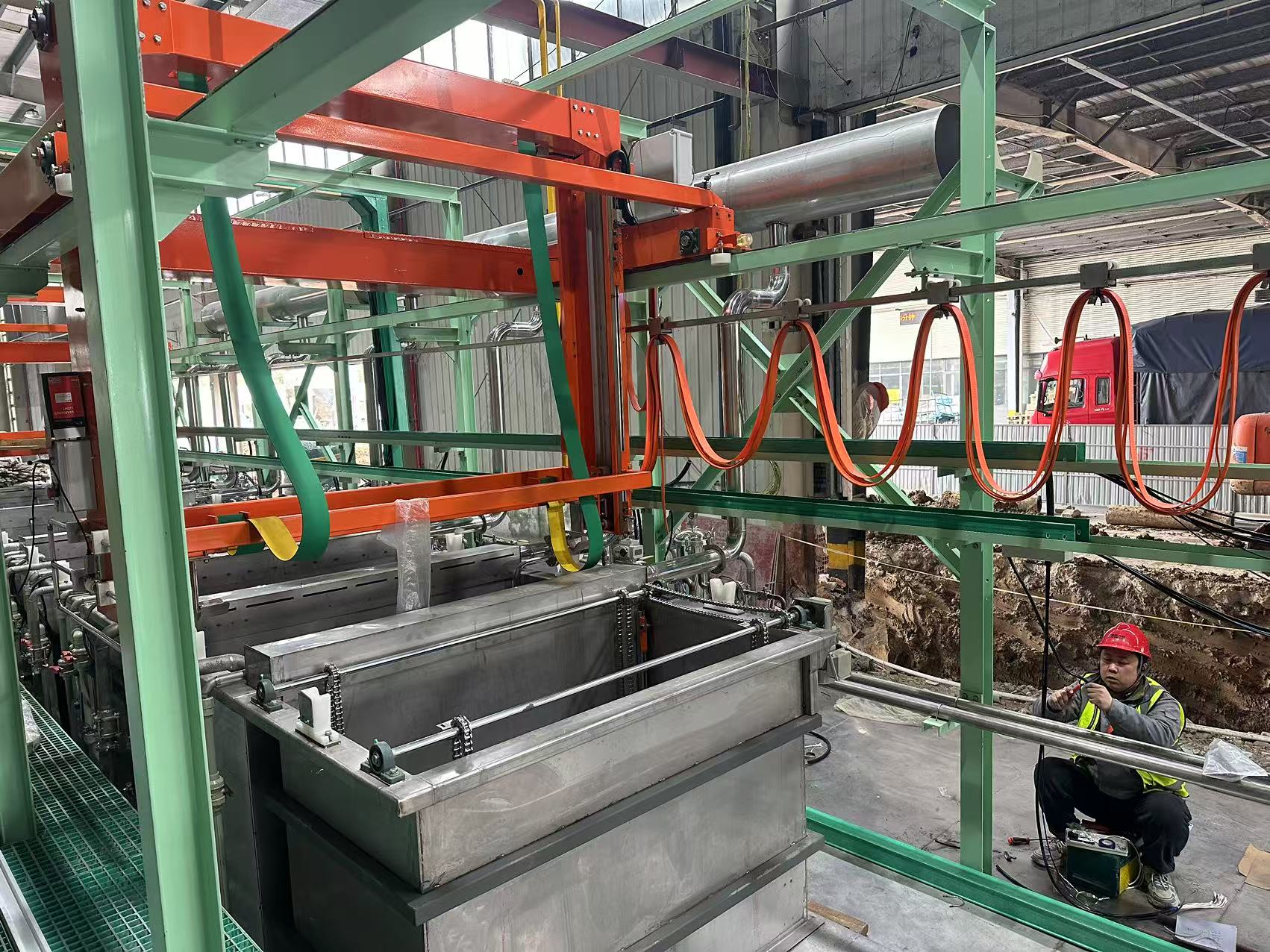 輸送行車:負(fù)責(zé)在槽體之間運(yùn)輸工件。